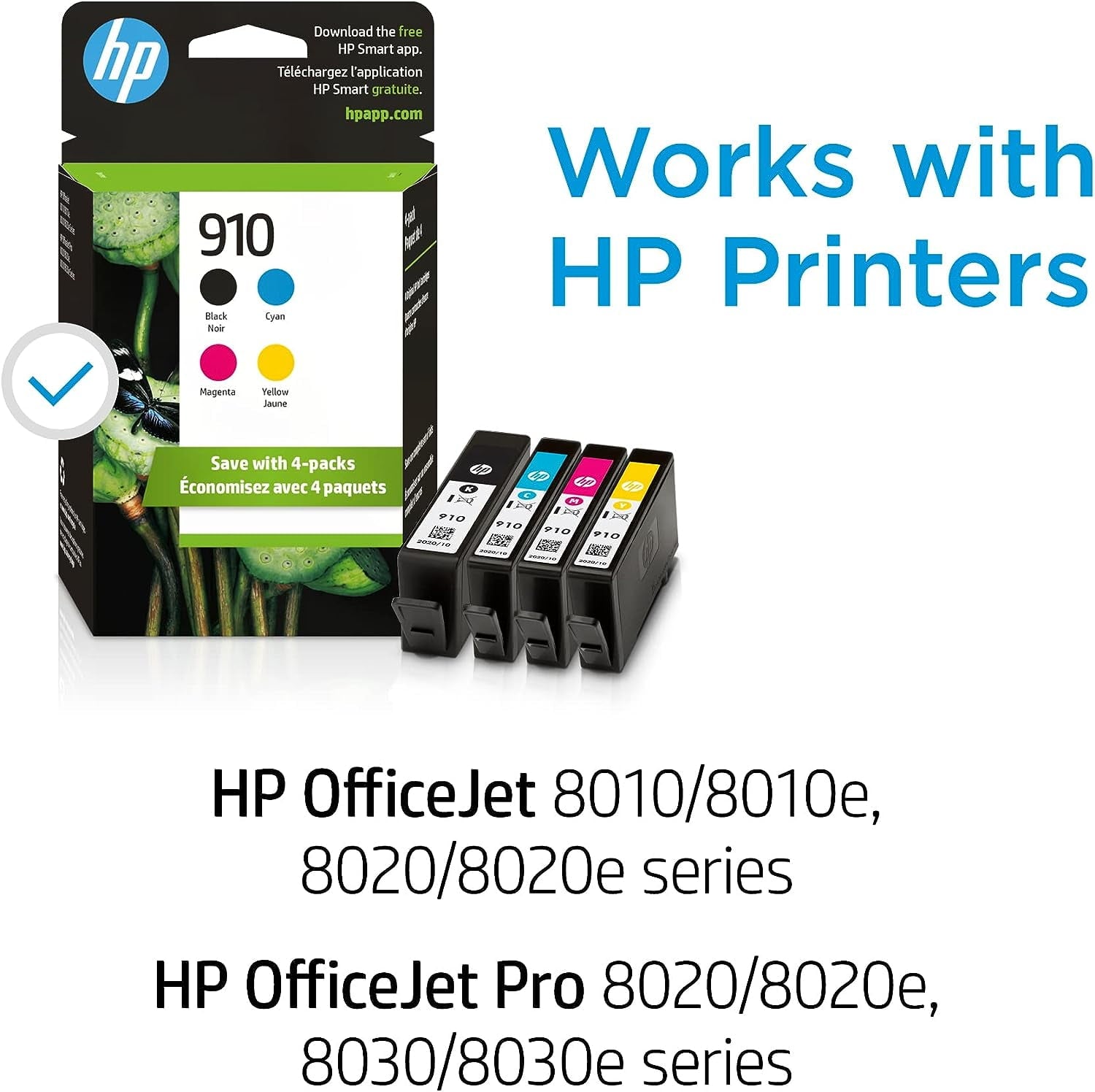 - What's in the box: 4 pack Original HP 910 Ink Cartridges combo pack(1 black, 1 cyan, 1 magenta, 1 yellow)